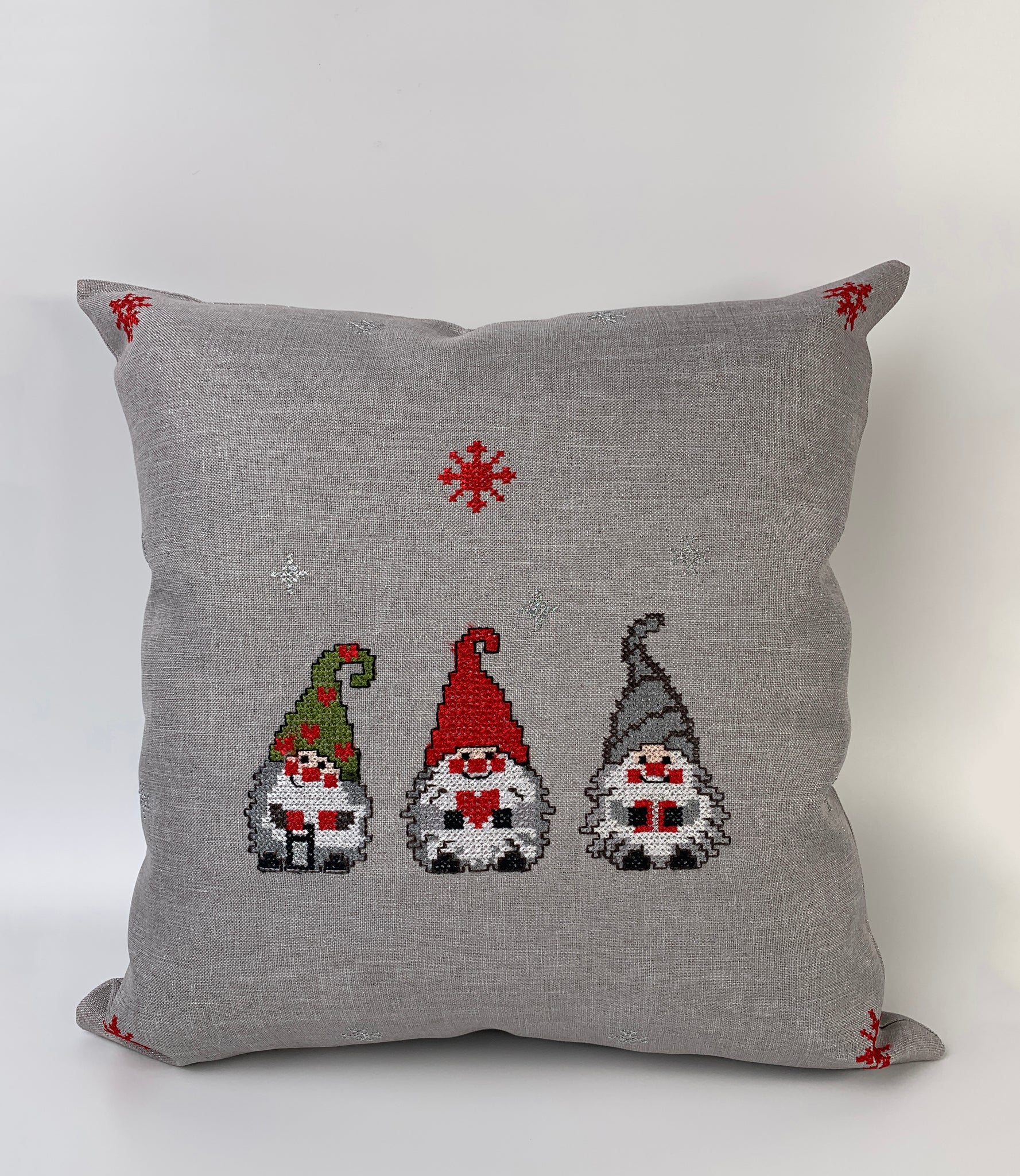 Upgrade your home décor this Christmas season with our beautiful, comfortable, and elegant embroidered pillow/cushion cover that will decorate any chair, sofa, or bed. Each pillow cover is embroidered with 3 beautiful and intricately cross-stitched Christmas gnomes. The pillow cover is made of polyester cloth and a zipper that allows easy insertion and removal of pillow inserts. Fits 15" x 15" pillow inserts. Cover only, pillow fill/insert not included!