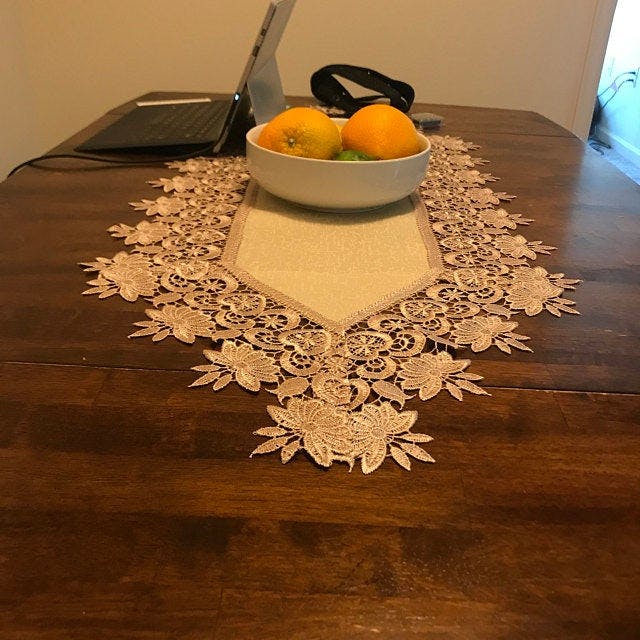 Beautiful, high quality European style lace table runner with ivory cloth is the perfect table décor all year round. This elegant collection is perfect for your dining table, dresser, or coffee table. For the best coordinated look, pair 4 or more placemats with one table runner.